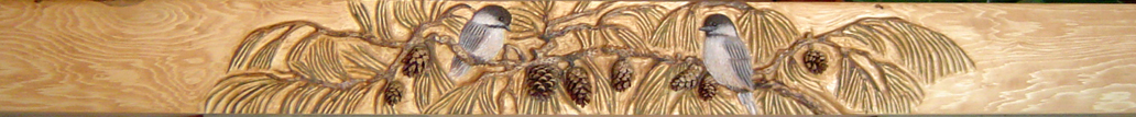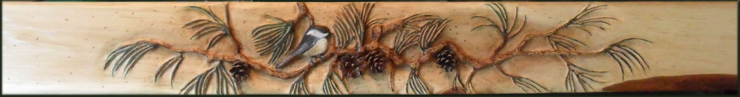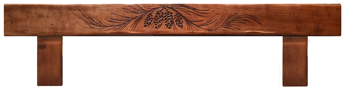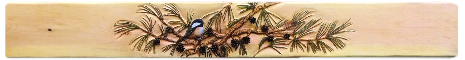 009 Chickadees Beam Mantel with Pine Cones